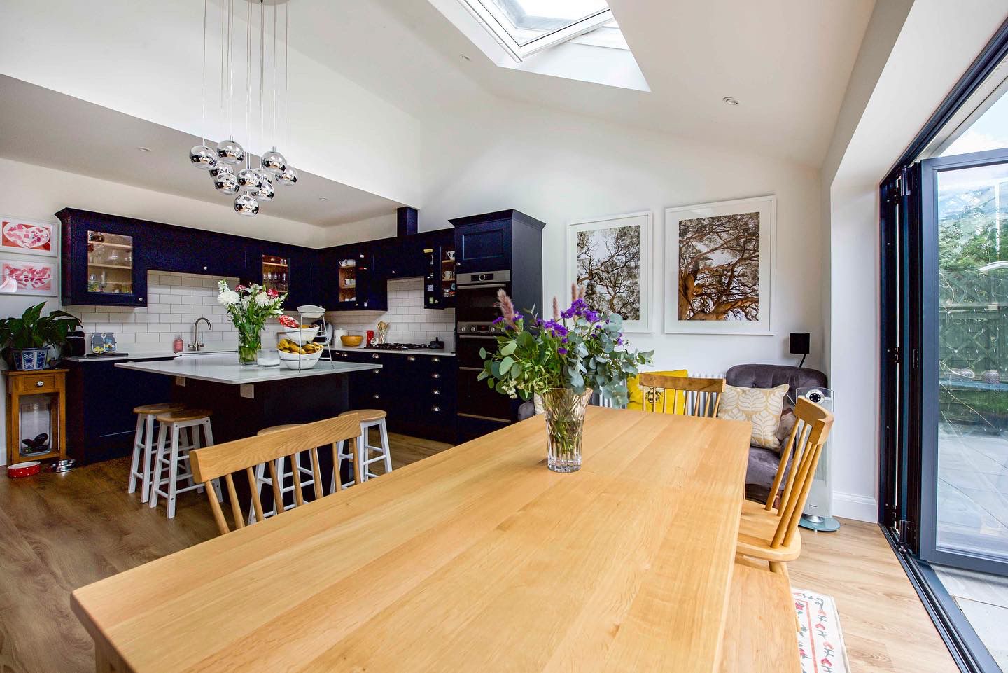 Set over three floors, the ground floor comprises a bay fronted reception room, separate utility room, cloakroom and the heart of the home is the stylish open plan kitchen and family room, with vaulted ceilings and skylights - the ideal place for both family life and entertaining alike. The bi-fold doors open on to the well maintained south facing garden, with views beyond over Crane Park.
